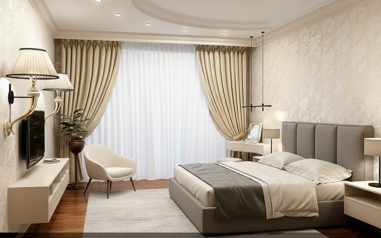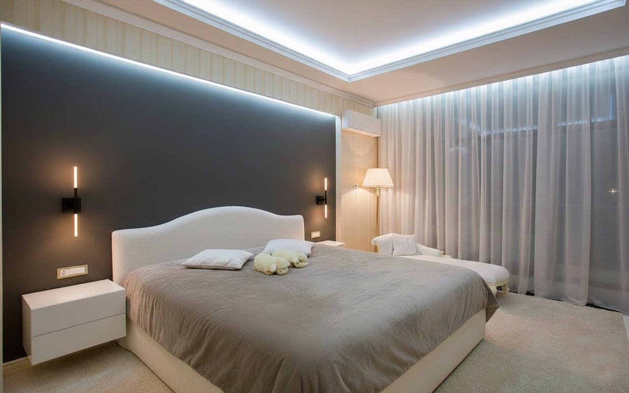 Монтаж натяжных потолков в спальню в Астрахани